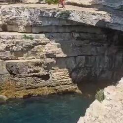Heute um 10 Uhr mit dem Motorrad los 24 Km bis zur entfernten Höhle zum baden gefahren , die wir letztes Jahr schon entdeckt hatten . Ist einfach ein Traum diese Badebucht mit Höhle. Viele springenMeer informatie