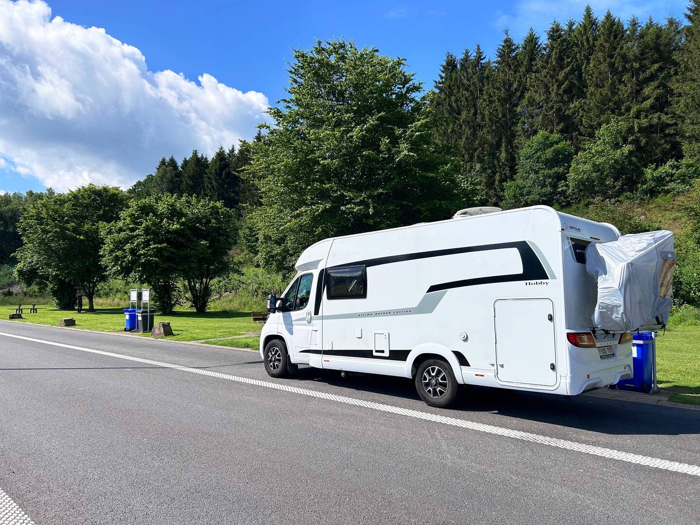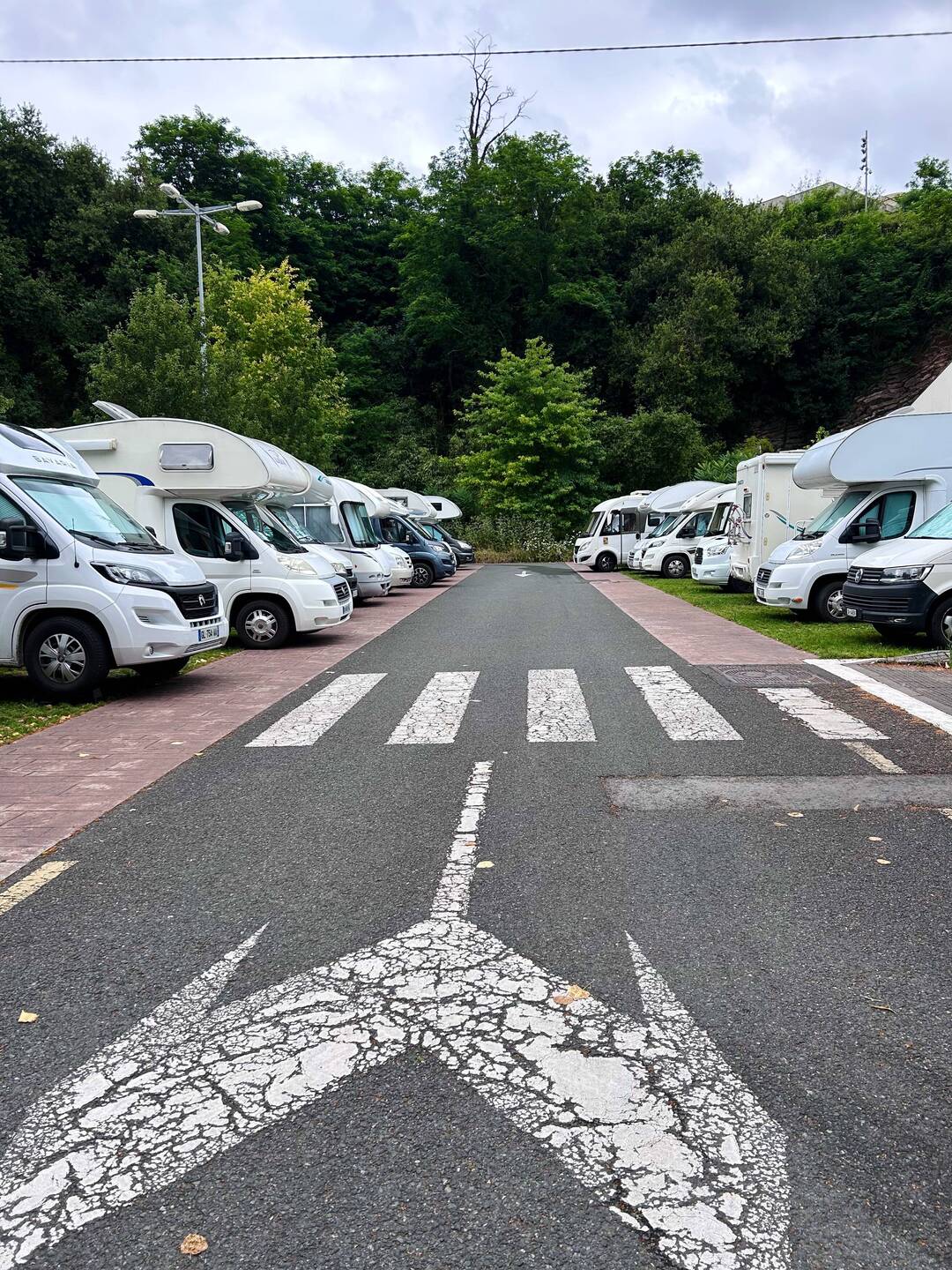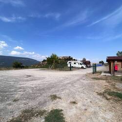 De camperplek is wel echt een parkeerplaats maar we mogen er overnachten