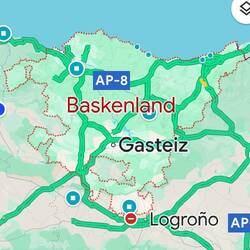 We rijden Baskenland uit. Opvallend waren het aantal politieke leuzen die het en der geschreven stonden en het aantal Palestijnse vlaggen.