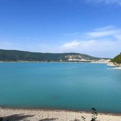 Na een wat saaie rit en veel 4sterren campings en dorpjes met vakantie winkeltjes nu een heerlijke plek gevonden aan het meer.