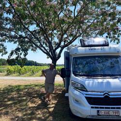 In Bordeaux. De zomer lijkt hier onderweg begonnen te zijn. Bloeiende zonnebloemen. Mooie camping.
