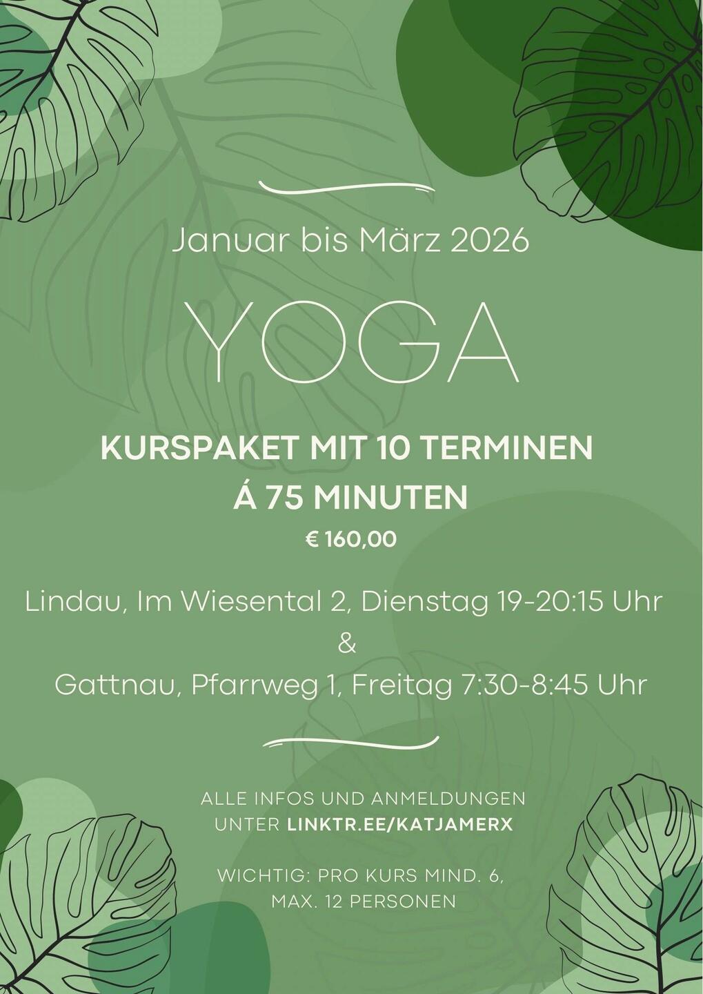 Mind. 6, Max. 12 Yogis pro Kurs