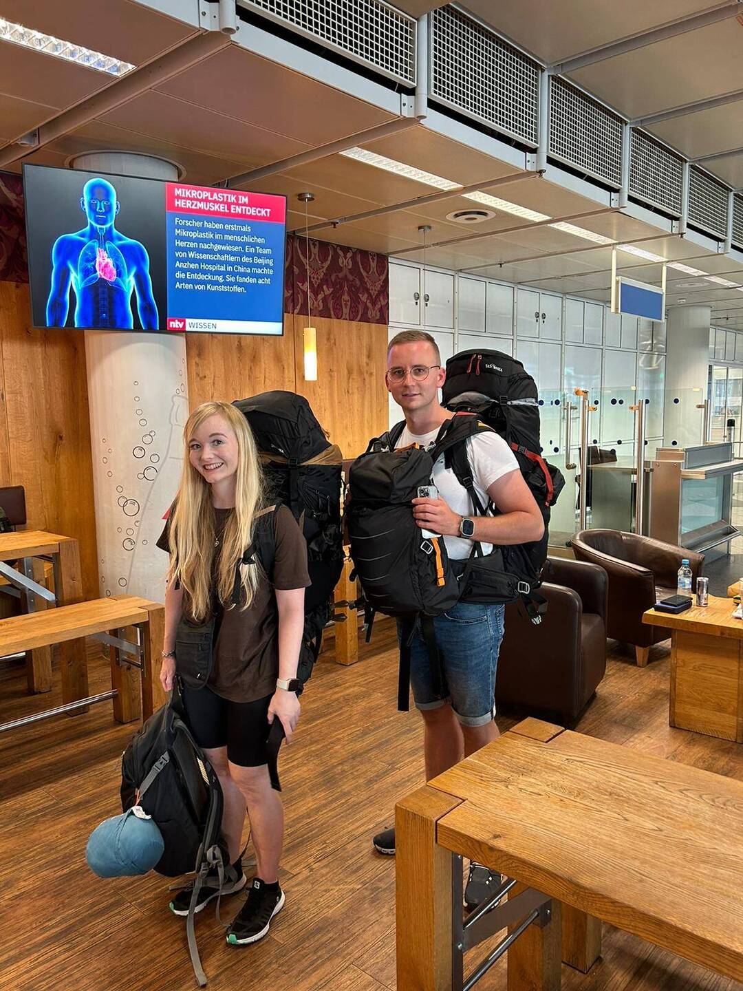 Jetzt gehts endlich los😍 Nachdem Flo wie fast bei jedem Flug seinen obligatorischen Sprengstofftest absolvieren musste, können wir endlich in den Flieger steigen! ✈️ Hoffentlich checkt unserLæs mere