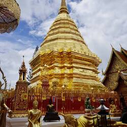 Nach einem leckeren und ausgiebigen Frühstück sind wir mit einem roten „Songthaew“ Pick up Taxi zu den Tempeln den Berg hinauf gefahren. Durch die vielen Kurven und das starke Ruckeln aufgrundLæs mere