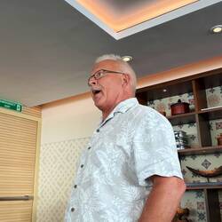 The four of us had dinner in the dining room and we then went to the Star theatre to hear Joe, one of the Viking singers in a solo performance.