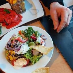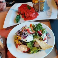 Steaks in vielen verschiedenen Variationen mit unterschiedlichen Beilagen, Mexikanische Burritos, Salate, diverse Vorspeisen und Nachspeisen. Große Auswahl, Essen gehobene Preise, Getränke normalesRead more