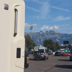 Die erste Nacht verbringen wir auf dem Stellplatz in Vaduz am Stadion.