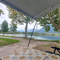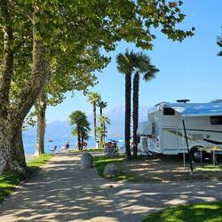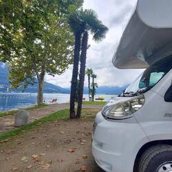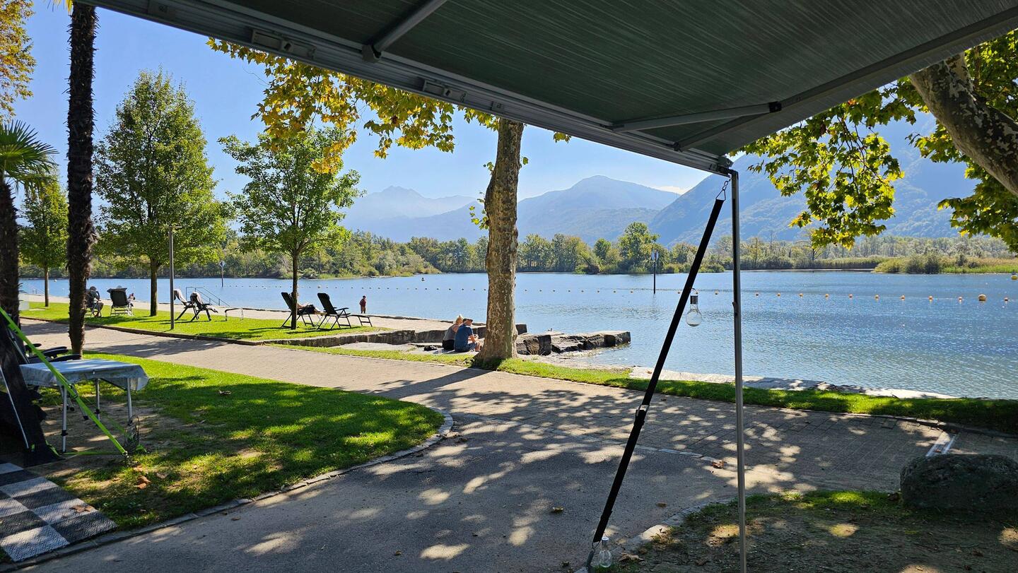 Bei Sonne in Vaduz gestartet, durch Regen gefahren und im Trockenen am Lago Maggiore angekommen. Sehr netter Empfang und dann konnten wir auch gleich unseren Platz Prestige Verzasca mit FlussblickLæs mere