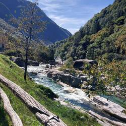 Eine wunderschöne Radtour durch das Valle Maggia, am Fluss entlang, durch schöne urige Bergdörfer und an unzähligen Wasserfällen vorbei bis zu einer römischen Brücke und zurück...