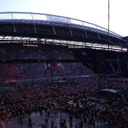 Mit dem Rad ist man vom Campingplatz aus in ca 20 Minuten an der Red Bull Arena. Hier gibt es wenn Konzerte sind sogar einen bewachten Fahrradparkplatz. Das Stadion ist recht übersichtlich und es warBaca lagi