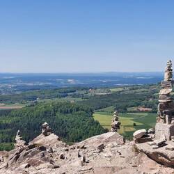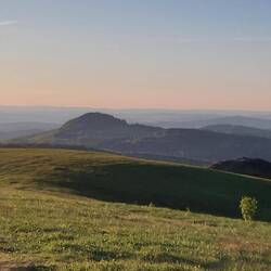 Heute sind wir die Extratour Wasserkuppe gelaufen: von der Wasserkuppe an der Fuldaquelle vorbei zum Guckaisee und nach einer Rast dort über den Pferdskopf wieder zurück zur Wasserkuppe. EineLeggi altro