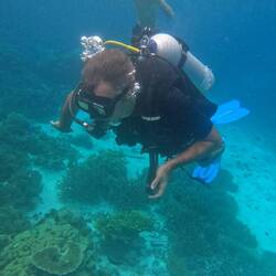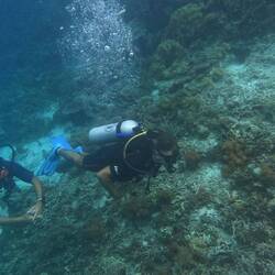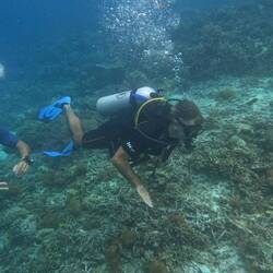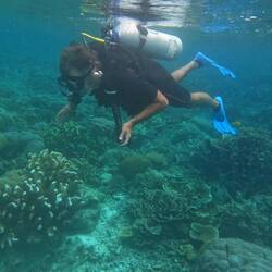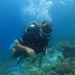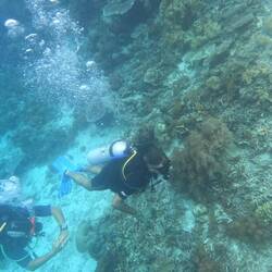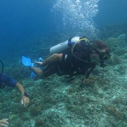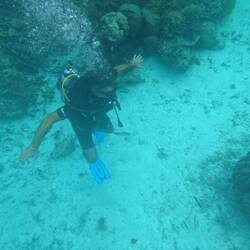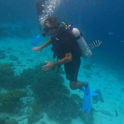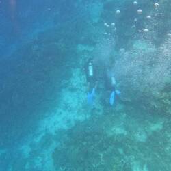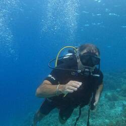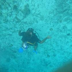 Thomas at his second dive. Awareness and control! And how many fishes !!!