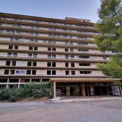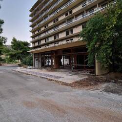 Wir stehen hier am Lost-Place-Spot Salanti Beach Hotel 🏨