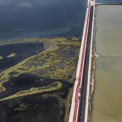 Salinen soweit das Auge reicht und Lagunen die sich anschließen.