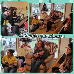 Randy, Marcia and I hosted Christmas Eve Dinner at Uncle Kay's. We dined on Randy's smoked baby back ribs, my corn pudding and cole slaw, Marcia's mac & cheese, collard greens and cookies, Sharon'sBaca lagi