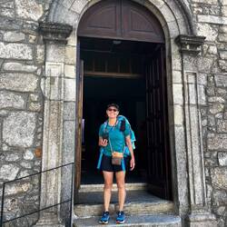 Walk was beautiful through woodsy areas and up and down some hills for the first time on this Camino. Which we are all quite happy about.
