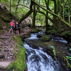 After going into the church in Cee and lighting candles, I thought everyone had moved onto the path and were ahead of me so I tried to catch up with everyone.
