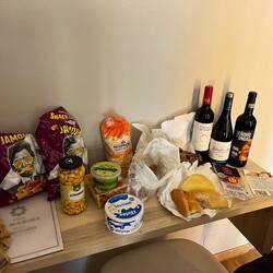 We had a few tinto de verano and an awesome meal and vino tinto along with olives and lupinis on our terrace.