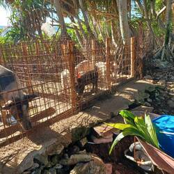 After putting together a meal with coconut, fish bones, and dinner leftovers, it's time to feed the real pigs.
