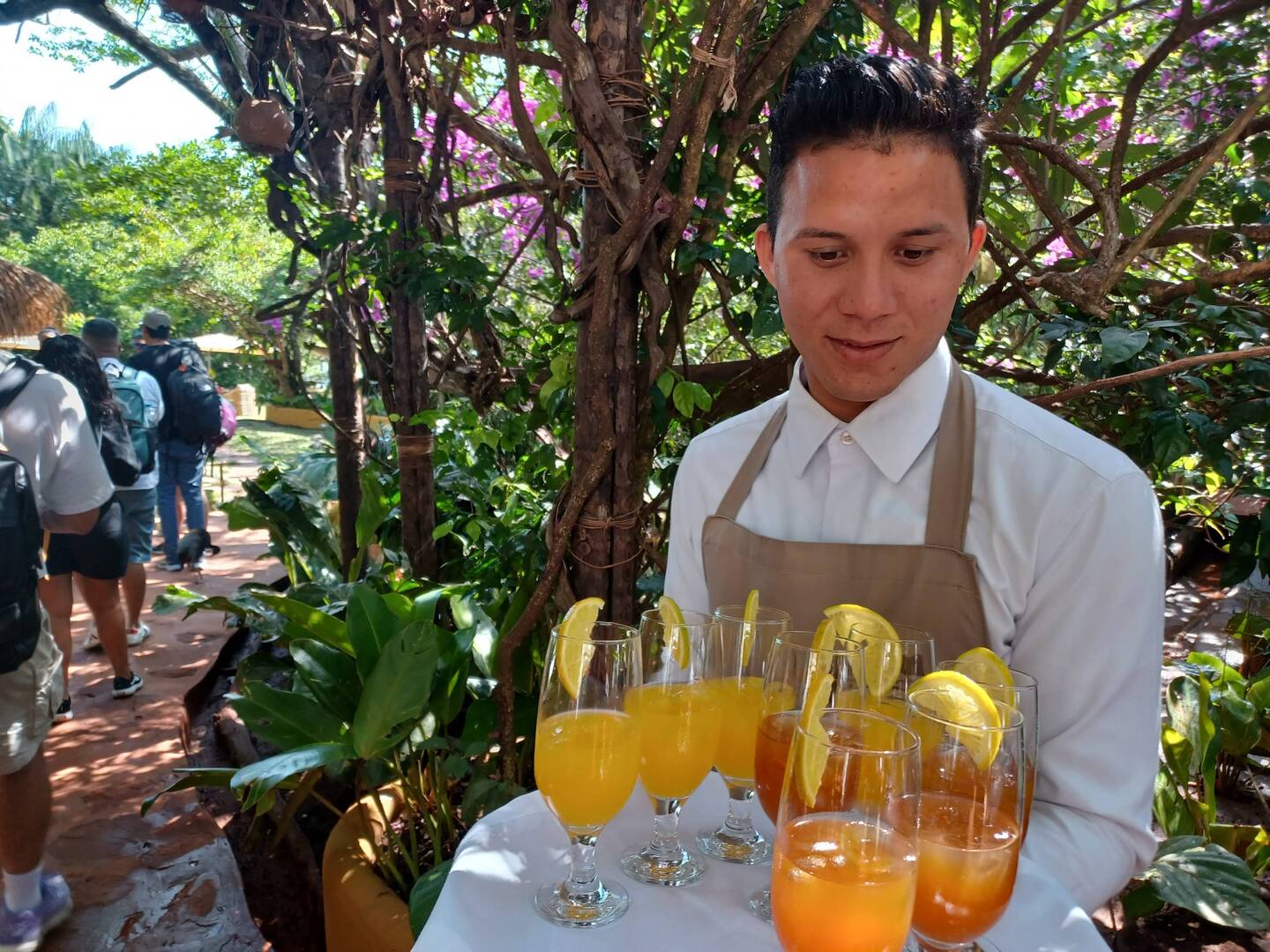 To Waku Lodge with champagne glasses of popular local drinks like sugarcane juice with lime.