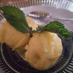 Baklava.. that not drowning in "sweetness".. and a "malicious" mango sorbet.. Yummy!