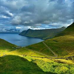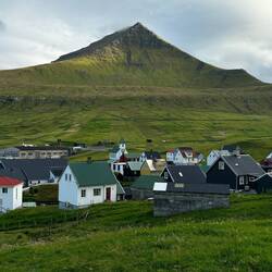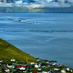 A small community like many others in the Faroe Islands that is located along the country’s coastline.