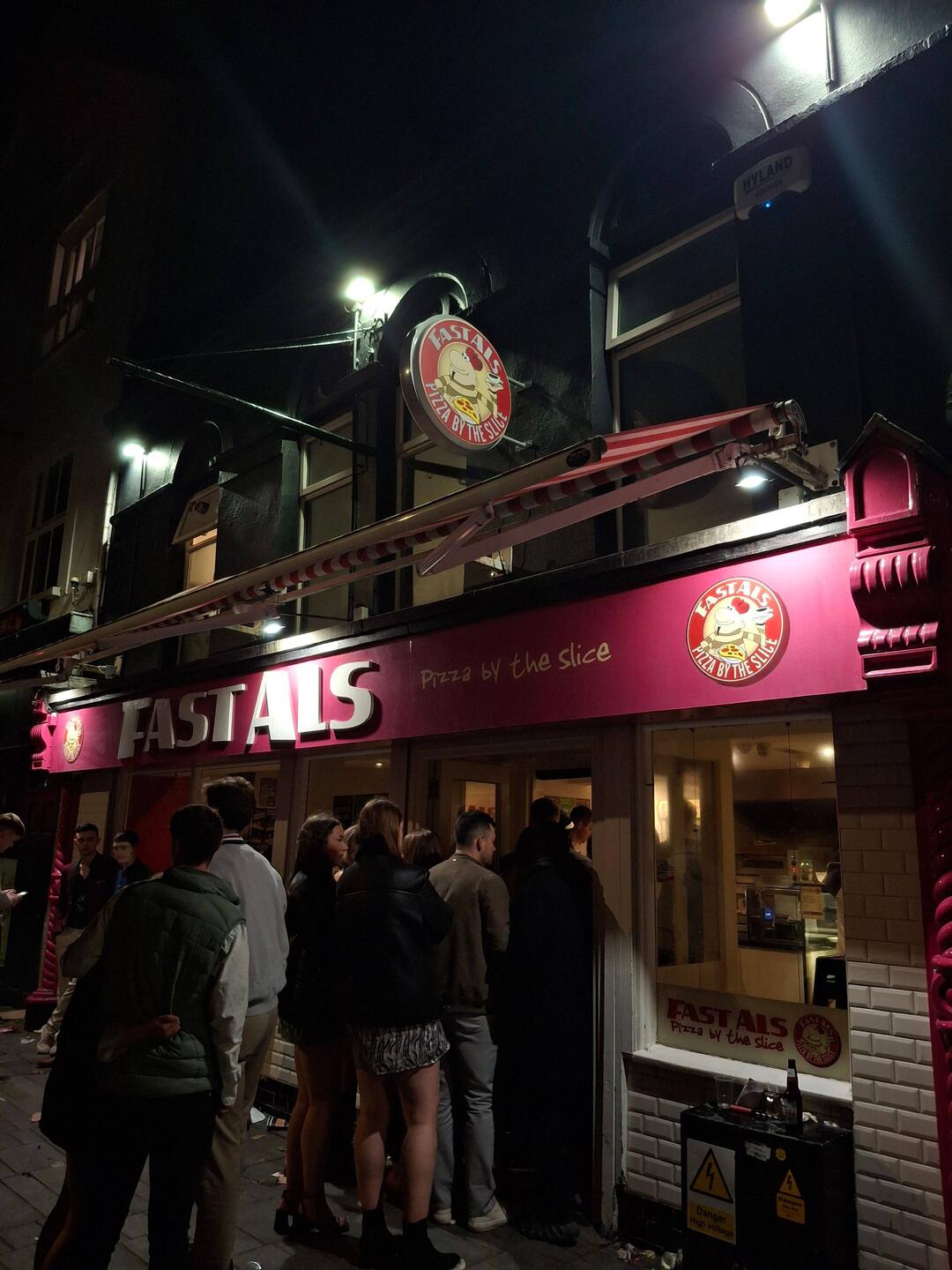Popular for late night pizza but you have to be patient to wait in long lines.. I pass