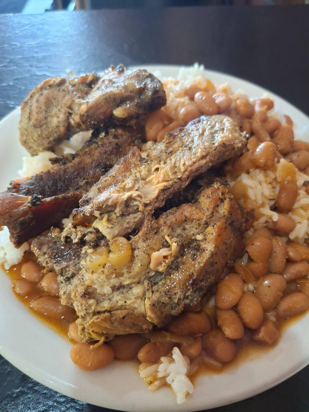 That were tasty and tender with a healthy serving of rice topped with flavorful beans. Add "Picante" if you want a little more kick