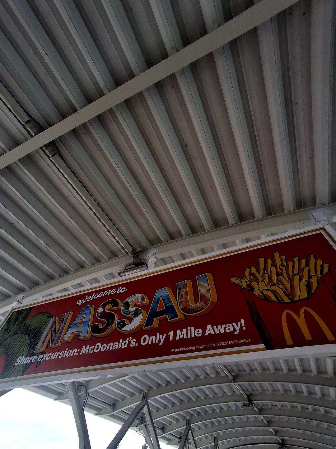 McDonald's definitely one of the cheapest one's although exploring Nassau and nearby public beaches by foot can be fun.. and not too costly