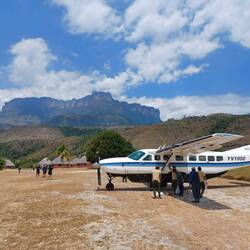 Shortly after leaving Angel Falls, we fly over Kavak Lodge, and then it's a descending for a relatively smooth touchdown on a gravel strip.