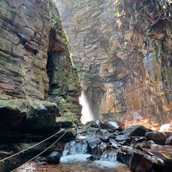 A thundering waterfall that provides a large swimming area below it surrounded by towering walls that glisten from descending mist, the scenery is stunning.