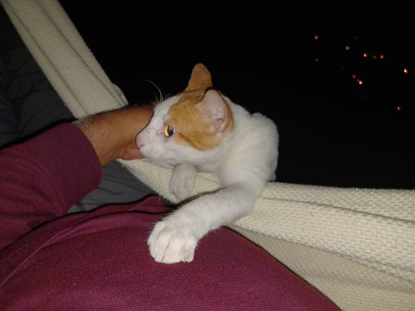 It all began with scratching along the bottom of my hammock, then an inquisitive peek to see who or what was in the hammock. Nothing harmful, Zi b think I will take a nap.. Purrŕrrr,.