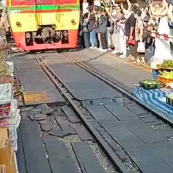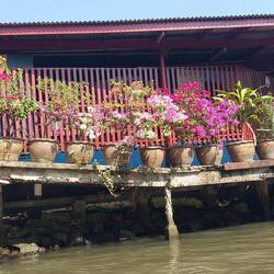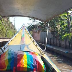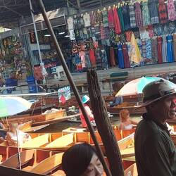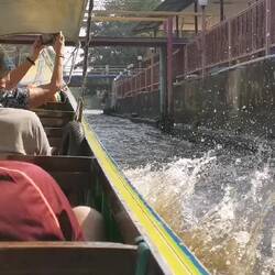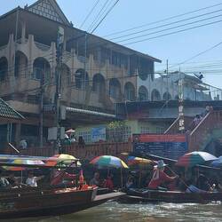Markt von Mae Klong Talad Rom Hup. Weiter geht es mit dem Schnellboot zu den schwimmenden Markt.