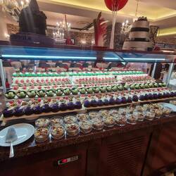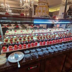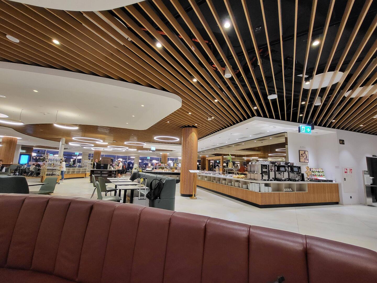 Wir genießen am Flughafen die Vienna Louge. Mit Eierspeise, Buttercroisant und Strudeln warten wir auf den Flieger.