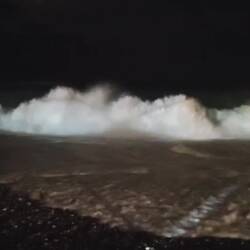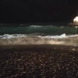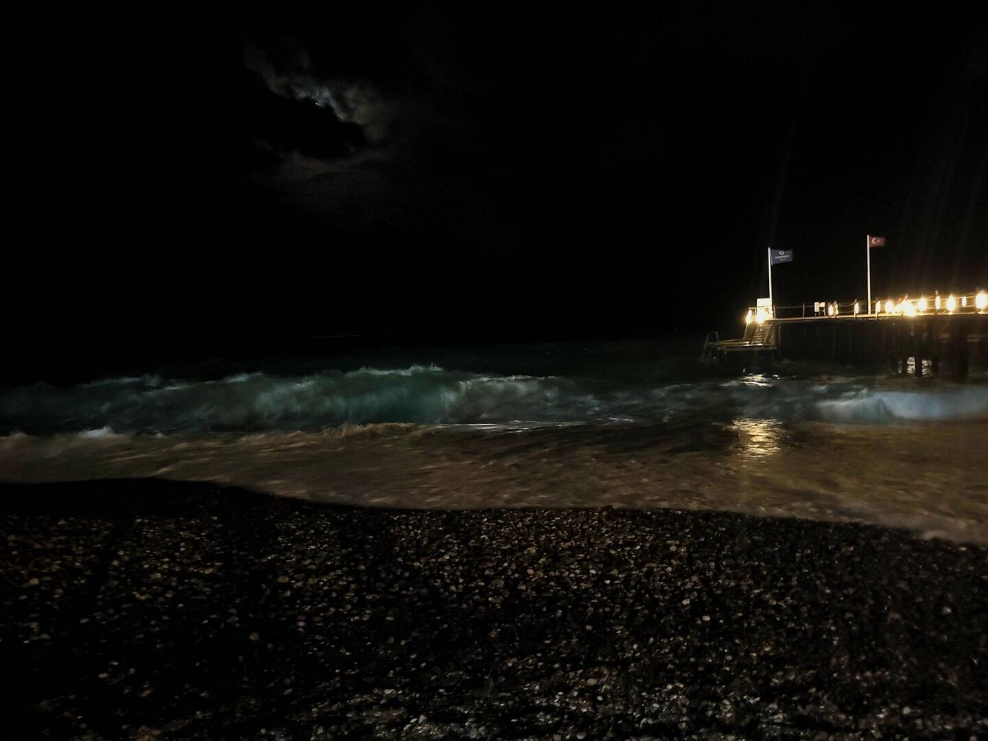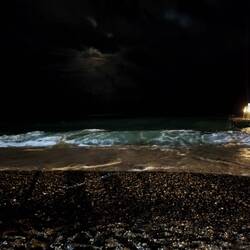 Heute gab es gute Wellen zum Baden. Am Abend wurde der Steg gesperrt weil sie so hoch wurden. Schade nur das es schon dunkel ist.