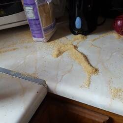 Ja, denn nicht nur die Tür hatte diesen Ton von sich gegeben als Tons wieder von ihrem Meilengang zurückkam, sondern auch der Zucker, den sie kurz darauf aus dem Schrank pfefferte (in dem Fall eher zuckerte, aber gut) und der sich über die ganzen Arbeitsfläche verteilte.