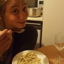 Viel zu spät begannen wir dann mit kochen - Pilzsoße mit Nudeln (Ja! Wir leben von Kohlenhydraten. Wo wir gerade dabei sind, das Toast hat auch wieder gelitten. Wenn es so weitergeht müssen wir bald eine weitere Packung kaufen! Oder drei!).