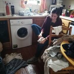 Also wurde losgelegt und Seegras von Muscheln befreit. Derweil häutete Antonia Fischstücke (stellte sich heraus, dass die für die Katzen waren...) oder schnitt das Seegras in kleine Stücke. Gegen 3 Uhr waren wir auch damit fertig und begannen unsere Wohnung klar Schiff zu machen, indem wir sie verwüsteten. Überall lag (und liegt) Wäsche, die entweder aufgehängt, auf den Boden geworfen oder in die Waschmaschine gestopft wurde.