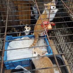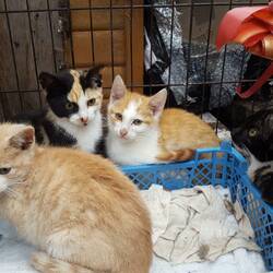 Da die restlichen Kitties ein riesen Chaos in ihrem Käfig veranstaltet hatten, hieß das für uns säubern und verbessern. So wurde ein Katzenklo eingerichtet und Karton ausgelegt.
