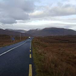 Als wir alles gefuttert hatten, machten wir uns auf zum Auto, denn heute wollten wir nach Westport...oder -point - wie Gele so schön sagte. Der westlichste Punkt Irlands ist es zwar nicht, aber immerhin stimmt die Richtung und so tuckerten wir los. Erstmal Richtung Clifden - eine Stadt, die Tons und ich schon einmal zuvor besucht hatten, da sie in der Nähe von Roundstone (wir erinnern uns: viele viele Katzen und viel putzen) liegt. Deshalb war es auch keine Überraschung, dass wir am gleichen Parkplatz hielten (um Fotos zu machen), wie der Bus vor zwei Monaten (um uns abzusetzen)- also eigentlich kam es für mich doch sehr überraschend...