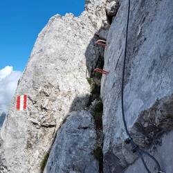 Den Tipp zweier Österreicher am Vortag, nicht den Normalweg (Eichstätter Weg) zur nächsten Hütte zu nehmen, beherzigte ich, nachdem der Wetterbericht bis 16 Uhr gutes Wetter voraus sagte. Zwar war mir klar, dass wenn Österreicher sagen: „Der Weg sei einfach“ man als Nicht-Alpenbewohner noch zwei Schwierigkeitsgrade drauf rechnen kann.