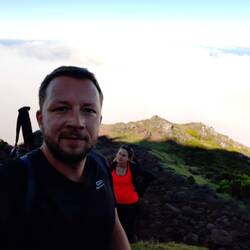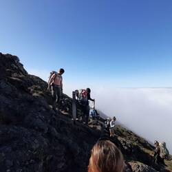 4 óra mászás után végre elértük a kráter peremét azaz a Pico tetejét. Mármint egy nagy lapos területet, mert a teljes csúcs az a Picuinho, ami a kráteren belül egy kis vulkáni kúp. Czytaj więcej