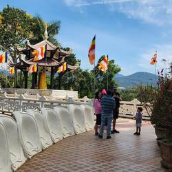 Une belle pagode au-dessus des cascades éléphant, où il y a notamment des statues géantes dans une qui va jusqu'à 75 m. Une espèce de Lady Bouddha on est monté on a pris l'escalier pour monterもっと詳しく