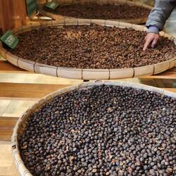 La saison du café c'est d'octobre à janvier. Les graines sont récoltées quand elles sont rouges, et elles sont mises à sécher.