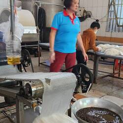 Ici on a vu une usine de fabrication du Pho (nouilles de riz plates) et du Bun (rondes), ainsi que des raviolis au riz.