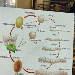 Le ver il est nourri d'abord pendant 28 jours et après il fait son cocon autour de la larve.