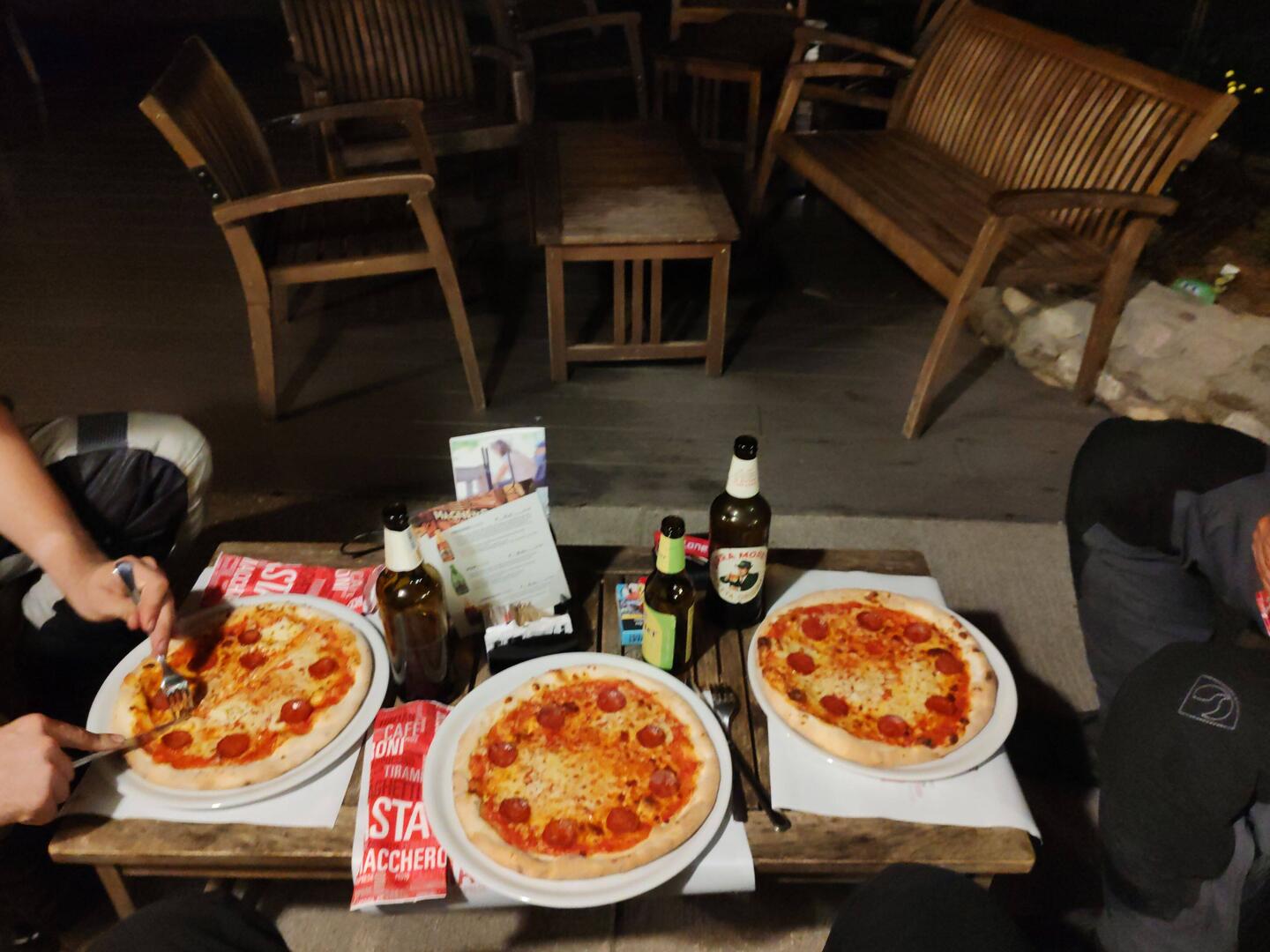 Gerade noch so was zu Esswn bekommen, Zelt Aufbau muss noch kurz warten, dunkel ist es eh schon