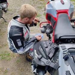 Nach ca 10.5 Stunden on the road sind wir am Campingplatz angekommen. Und wenn man keinen Gürtel dabei hat nimmt man einfach einen Spanngurte von den Taschen