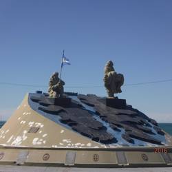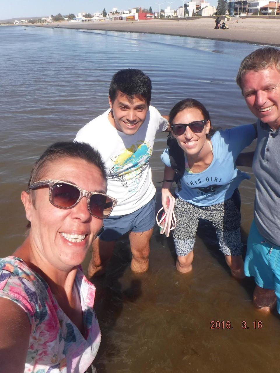 Mateus and marie have invited us to take lunch with them at the seafood restaurant across the way from the hostel. Today is Maries last day before she heads back towards Buenes Aires for her friends wedding and yet again these two people are what has made our stay here special. We agree to let them order and are served with the freshest Calamari i have ever tasted , salad , and frittata and of course an ice cold bottle of stella to wash it down. The setting here is perfect sat just slightly off the shoreline, watching children and adults alike frolicking in the sea, and its at moments like this I appreciate how blessed i am to be doing what im doing. We finish lunch and take a stroll along the shore dipping into the sea. At the start of the sea is a thick algae and it feels like im walking through mud not unpleasnt but not pleasant either but once you are through this the water turns really clear, and really cold. Once again we aquire a temporary dog who follows us all along the shore where at the end is a monument for all the fallen soldiers of the falklands.