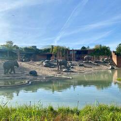 Nach dem Frühstück ging es mit dem Fahrrad zu einem Shop, den eine Mitspielerin (Læssøe) von Marina empfohlen hatte. Dort gab es Kleider in tausend Farben und Mustern, durch die sich Alisha und Marina erfolgreich durchprobierten. Mit einem bzw. vier neuen Kleidern im Gepäck fuhren wir mit dem Fahrrad bis zum Park in Frederiksberg, wo wir eine Runde zum Elefantengehege spazierten. Dieses befindet sich am Rand des Zoos, und man kann auch als Nicht-Zoobesucher die Elefanten bestaunen. Das Wetter war mal wieder superschön und warm, weshalb es so richtig schön im Park war.